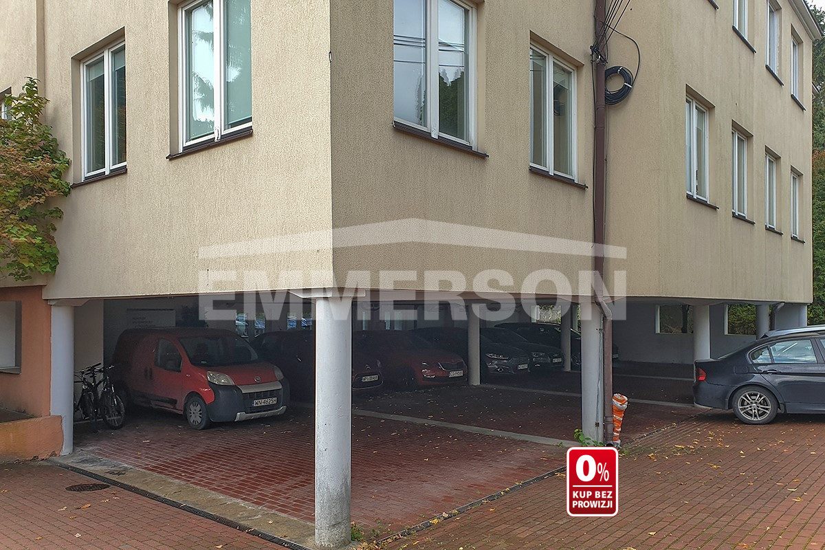 Teren utwardzony, ok. 30 miejsc parkingowych naziemnych, w parkingu podziemnym obecnie magazyn, możliwość zmiany.