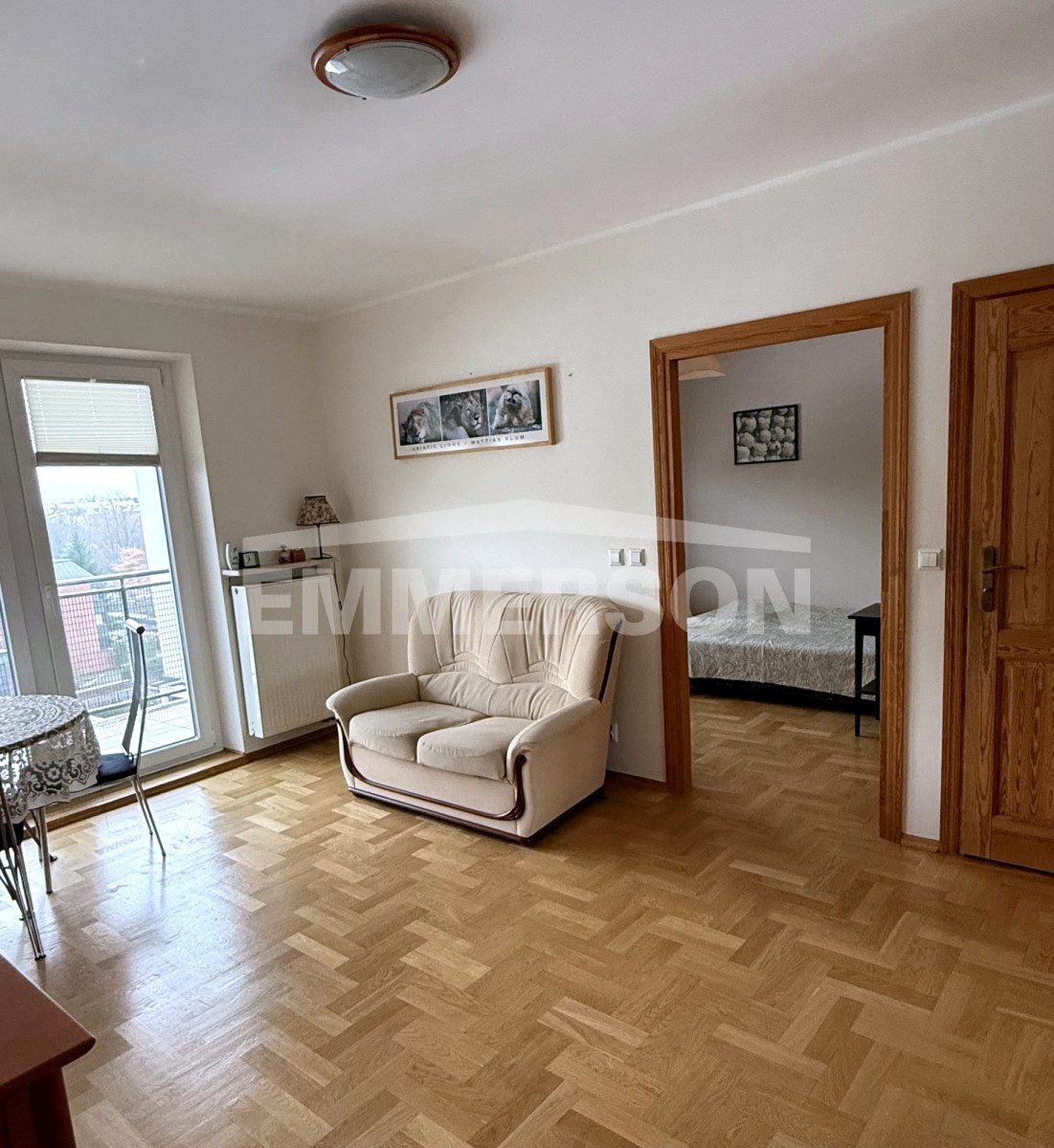 Mieszkanie w bardzo dobrym standardzie, umeblowane, duży balkon wychodzący na wewnętrzny teren.