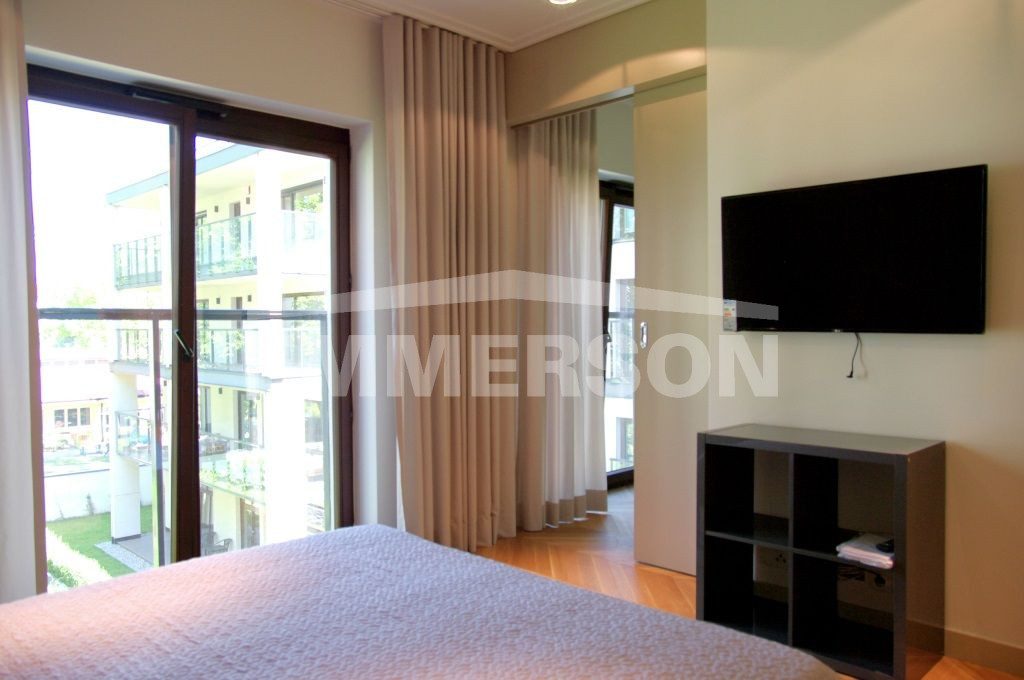 Apartament jest w pełni umeblowany i wyposażony, wykończony materiałami wysokiej jakości pod okiem architekta wnętrz. Funkcjonalny układ- dwustronny- strefa dzienna i prywatna.