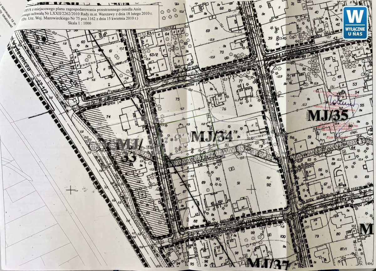 istniejącą – do kontynuacji użytkowania z dopuszczeniem modernizacji i przebudowy z zachowaniem skali i charakteru architektonicznego istniejącego osiedla; 2) uzupełniającą – na wolnych działkach oraz wymienną – w miejscach zabudowy zdegradowanej. 2. Dopuszcza się na terenie, o którym mowa w ust. 1 kontynuację oraz realizację funkcji usługowych o uciążliwości nie wykraczającej poza teren własnej działki. 3. Ustala się typ zabudowy: budynki wolnostojące i bliźniacze oraz małe domy mieszkalne do 4 mieszkań. 4. Dopuszcza się zabudowę szeregową z przyłączeniem do kanalizacji miejskiej. 5. Dla nowej zabudowy ustala się następujące warunki: 1) lokalizowanie jednego budynku na jednej działce, 2) architektura i zagospodarowanie terenu nawiązujące do istniejącego charakteru osiedla, 3) wysokość budynków do 12 m. od poziomu terenu do najwyższej kalenicy dachu, 4) dachy strome o pochyleniu połaci równym lub większym od 30º – poddasze użytkowe, 5) wskaźnik maksymalnej intensywności zabudowy I = 0,7, 6) utrzymanie min. 50% powierzchni działki biologicznie czynnej, 7) zaleca się ujednolicenie ogrodzeń sąsiadujących posesji. 6. Ustala się lokalizowanie garaży i miejsc parkingowych na terenie własnej działki. 7. Ustala się obowiązek zachowania w maksymalnym stopniu istniejącego starodrzewu. 8. Dla terenów MJ/34, MJ/35 obowiązują ustalenia § 50 dotyczące Kanału Wawerskiego.
