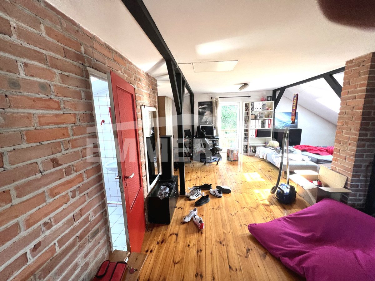 Na drugom piętrze przestrzeń otwarta, z balkonem, łazienką i aneksem kuchennym.