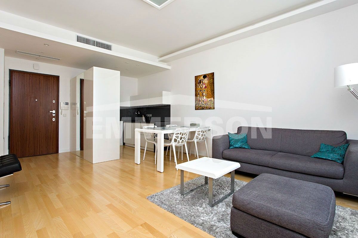 Atrakcyjne wnętrze oraz najwyższej jakości wyposażenie zadowoli każdego ceniącego wysoki standard najemce. Dzięki dobremu rozplanowaniu mieszkanie posiada wszystkie niezbędne sprzęty ulokowane w estetyczny i nowoczesny sposób. W mieszkaniu została zamontowana klimatyzacja co z pewnością zwiększy komfort użytkowania apartamentu.