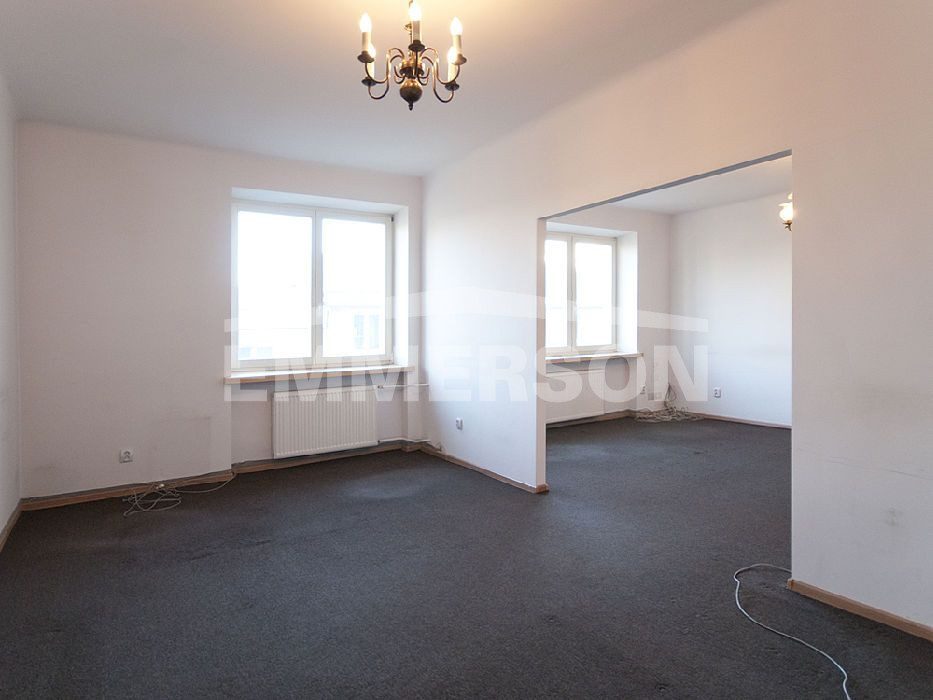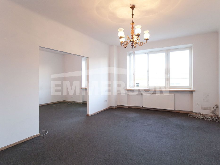 Mieszkanie w znakomitej lokalizacji, blisko Placu Konstytucji. Pomimo, iż znajduje się w centrum, jest ciche. Okna wychodzą na ul. Piękną, widać Pałac Kultury. Pokoje wielkości 22, 18, 17m2, jeden w amfiladzie, na podłodze parkiet dębowy, drzwi wewnętrzne i szafy w przedpokoju również dębowe. Okna nowe, drewniane. Na życzenie nowego właściciela meble znajdujące się w mieszkaniu mogą pozostać. W kuchni o powierzchni 9,2m2 jest sprzęt AGD oraz cała zabudowa. Zostały wymienione wszystkie piony i rury kanalizacyjne, łazienka (6,5m2) oraz toaleta (1,2m2) są w trakcie remontu. Dach i elewacja zewnętrzna budynku po remoncie. Mieszkanie znajduje się w bardzo „klimatycznej” 60-letniej kamienicy. Obok budynku mieści się szkoła oraz przedszkole, ponadto pełna infrastruktura. Mieszkanie wymaga lekkiego odświeżenia. Znakomicie nadaje się na działalność gospodarczą, np. kancelarię prawniczą. Czynsz administracyjny 1700 zł.