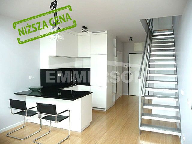 Stylowy dwupoziomowy loft o pow. 60.15 mkw na 3 i 4 piętrze z wielkim oknem i balkonem w nowoczesnym kompleksie Woronicza Qbik do wynajęcia na cele mieszkaniowe.