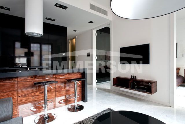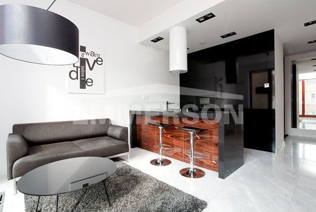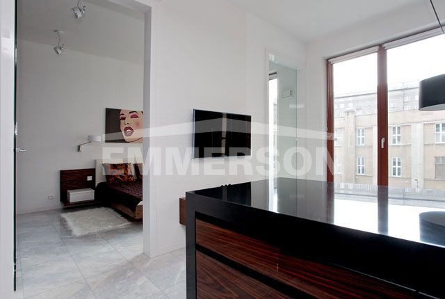 Mieszkanie jest wykończone, urządzone w wysokim standardzie (drewno, granit). Bardzo eleganckie, praktyczne i funkcjonalne. Łazienka wyłożona naturalnym kamieniem, prysznic z deszczownicą. Komfortowy salon połączony z kompletnie wyposażoną kuchnią. Kuchnia zabudowana jest szafkami oraz AGD w zabudowie: lodówka, zmywarka, kuchenka mikrofalowa, płyta grzewcza, piekarnik. Oddzielna sypialnia z wbudowaną dużą ilością szaf wnękowych. W mieszkaniu jest klimatyzacja, system inteligentnego zarządzania, wysokość mieszkania wynosi 3m. Czynsz najmu to 5400 PLN miesięcznie – opłaty administracyjne są w cenie, a dodatkowo płatne jest zużycie mediów zaliczkowo w wysokości ok 650 złotych do rozliczenia wg. rzeczywistego zużycia. Oddzielna sypialnia z wbudowaną dużą ilością szaf wnękowych. Opłaty administracyjne są w cenie, a dodatkowo płatne jest zużycie medi płatne zaliczkowo w wysokości ok 650 złotych do rozliczenia wg. rzeczywistego zużycia. Bardzo elegancki budynek z eleganckim częściami wspólnymi, wbudowaną wewnętrzną klimatyzacją całodobowo strzeżony.