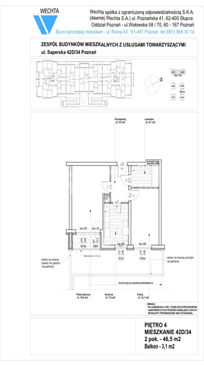 Polecam do sprzedaży mieszkanie o pow. 46,5 m2 na IV piętrze bloku z windą przy ul. Saperskiej na osiedlu „Pod Platanami”. Przytulne i ciepłe mieszkanie składa się z niezależnych 2 pokoi, oddzielnej kuchni, łazienki i dużego balkonu.