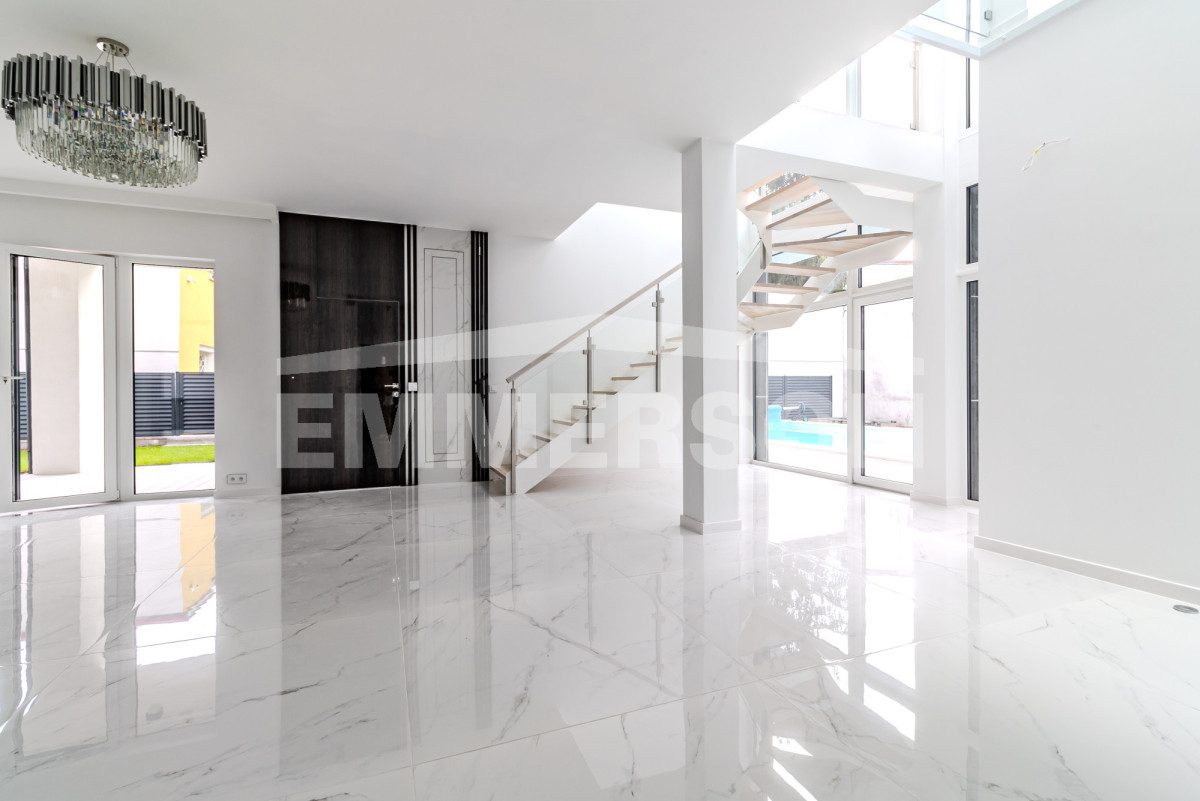 Heating of the house and heating of water in the pool – heat pumps and photovoltaic installation additionally air conditioning with the possibility of warm air supply. Underfloor heating, heated entrances and gates. Material – porotherm brick + insulation with facade polystyrene foam with a thickness of – 20 cm.