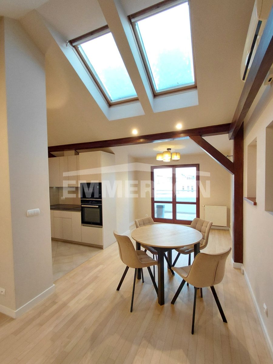 Funkcjonalne, przestronne oraz słoneczne mieszkanie na poddaszu (IV piętro) w odrestaurowanej kamienicy z 1926 r. z pięknym ogrodem, tuż przy parku. W sąsiedztwie przedszkola, place zabaw i sklepy stacja metra Pl. Wilsona. Mieszkanie składa się z dużego pokoju dziennego połączonego z w pełni wyposażoną kuchnią i jadalnią (łącznie 40 m2); 3 sypialni (17m2, 15m2 i 9m2), widnej łazienki z wanną i prysznicem oraz szafami wnękowymi (12m2) oraz wc (2m2), a także przedpokoju z szafą (10m2). Największa sypialnia to jedyny pokój z ukośnym dachem i jej powierzchnia mierzona po podłodze to 25m2. Ta i druga większa sypialnia mają wbudowane duże, nowoczesne szafy wnękowe. Niewątpliwym atutem mieszkania jest mały taras z widokiem na ogród i park, a także stryszek o powierzchni ok. 10 m2 służący jako schowek oraz klimatyzacja. Mieszkanie bardzo słoneczne dzięki dodatkowym oknom dachowym. Liczniki na wodę i prąd. Czynsz do spółdzielni ok 1670zł. Możliwość rozbudowy o około 50m2 poprzez odkupienie od spółdzielni dodatkowej części strychu na tym samym poziomie. Znakomita komunikacja. Bogata infrastruktura. POLECAM!!!
